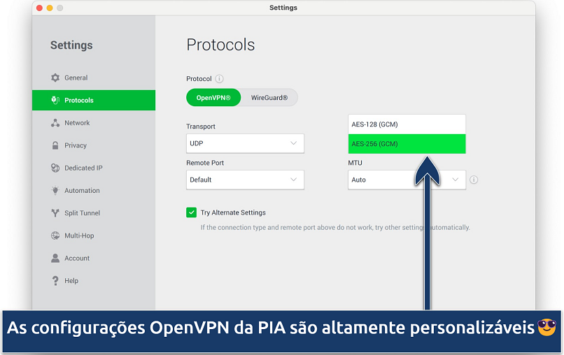 3. Private Internet Access: recursos personalizáveis para personalizar sua conexão de torrent
