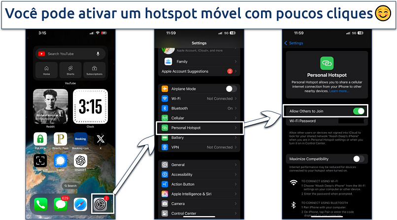 Você precisa de um dispositivo com um plano de dados ativo. E pode aumentar sua privacidade usando uma VPN confiável para Android ou iOS. - Habilite o recurso de hotspot móvel.