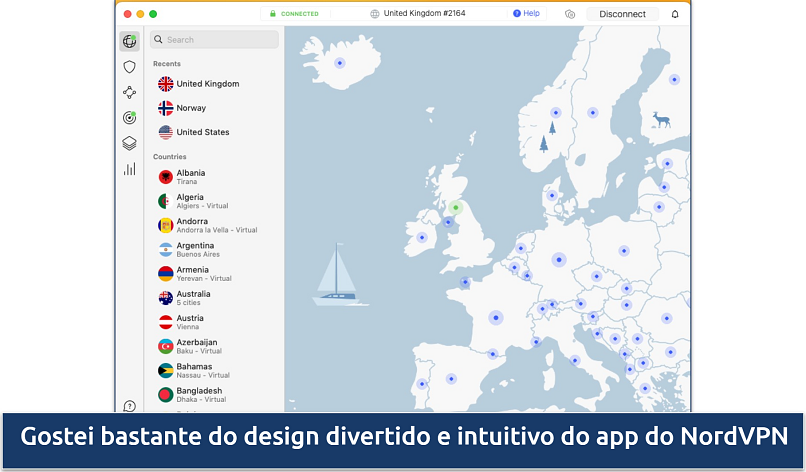O NordVPN oferece um dos apps mais intuitivos que encontrei, portanto ele é ótimo se você nunca usou uma VPN para Netflix antes. O mapa de servidores facilita para se conectar a qualquer localização com um clique. Durante nossos testes, conseguimos instalar o NordVPN e começar a assistir à Netflix nos servidores do Reino Unido em apenas dois minutos.