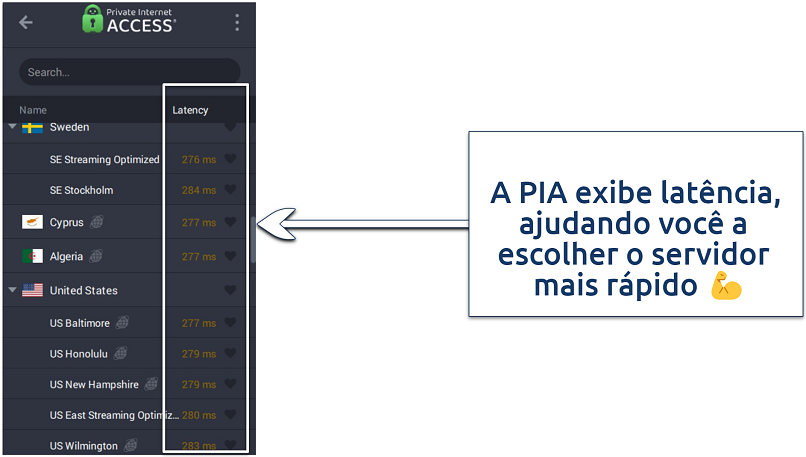 A ampla rede do PIA abrange 91 países, incluindo servidores em todos os estados dos EUA, portanto não será difícil encontrar um servidor seguro para ver filmes a partir de qualquer lugar. Sua rede ainda tem servidores específicos de localização otimizados para streaming, em vez de servidores específicos de local, como o CyberGhost. Enquanto testava o servidor otimizado da PIA para o Leste dos EUA em Nova Jersey, meu colega de equipe americano estabeleceu uma conexão segura em segundos, a qual foi rápida para streaming ininterrupto.